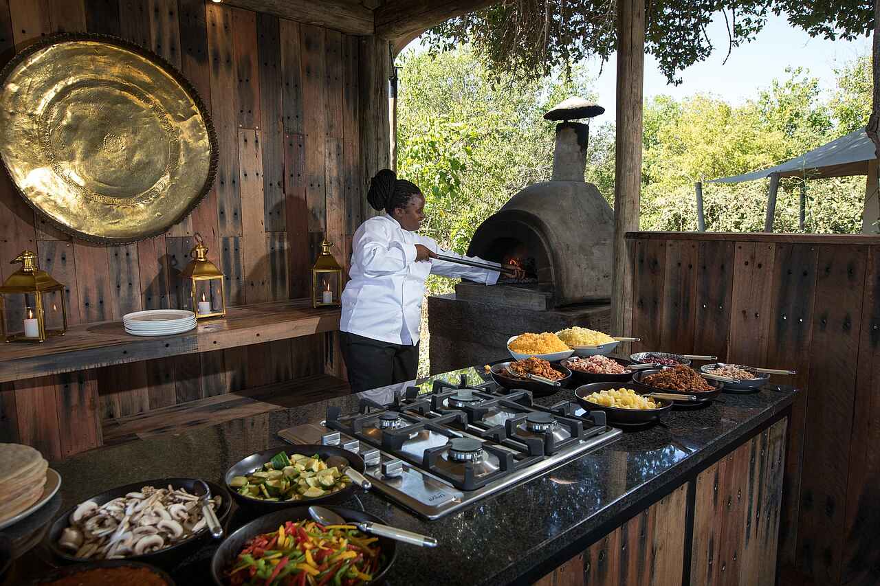 Die Küche des Zarafa Camps setzt auf frische Zutaten und kreative Kombinationen aus regionalen und internationalen Einflüssen. Die Mahlzeiten werden im offenen Speisebereich oder auf der Terrasse serviert und orientieren sich an den Safari-Aktivitäten des Tages. Frühstück, Mittagessen und Abendessen sind inklusive, ebenso eine Auswahl an Weinen, lokalen Bieren und hochwertigen Spirituosen. Das Küchenteam bereitet Gerichte zu, die sowohl leicht als auch geschmackvoll sind. Auf Wunsch können private Abendessen arrangiert werden, die ein besonders persönliches Erlebnis schaffen.