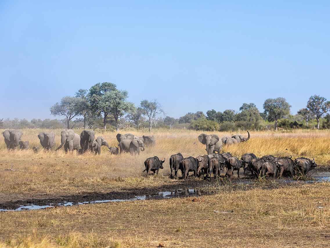 Die Region rund um das Zarafa Camp zeichnet sich durch hohe Wildtierdichte aus. Elefanten, Büffel, Giraffen und Zebras werden häufig gesehen. Verschiedene Antilopenarten wie Impala, Kudu, Sable und Roan ziehen durch die offenen Ebenen. Die Wasserwege bieten Lebensraum für Flusspferde und Krokodile. Raubtiere wie Löwen, Leoparden und Hyänen sind regelmäßig unterwegs. Mit etwas Glück zeigt sich auch ein Rudel Afrikanischer Wildhunde. Die Vogelwelt ist vielfältig und umfasst sowohl Wasservögel als auch Greif- und Steppenvögel. Diese Vielfalt macht die Region zu einem der attraktivsten Safarigebiete Botswanas.