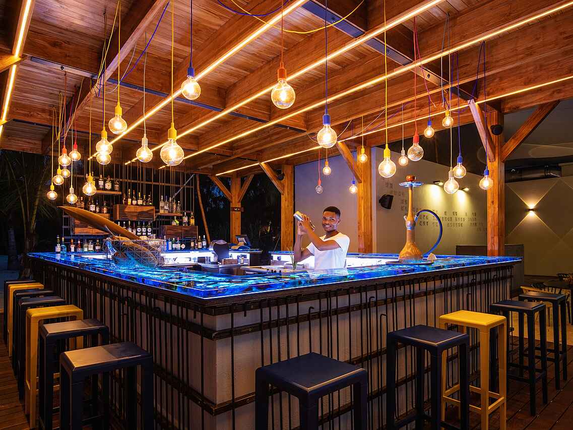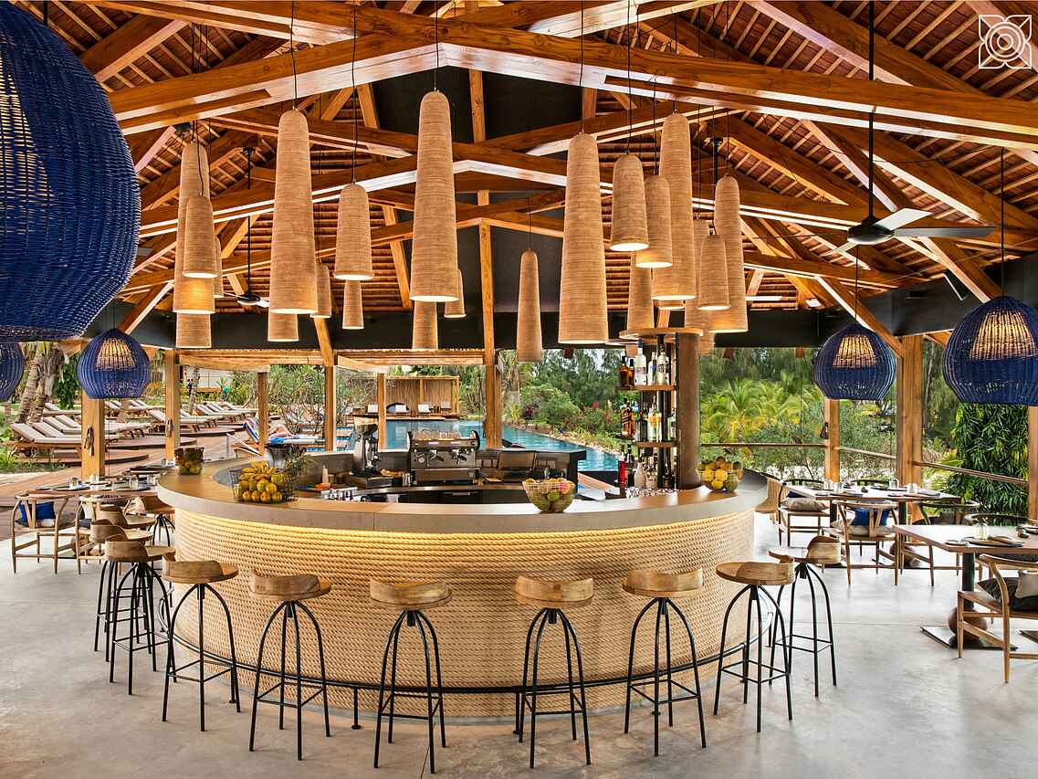 Gäste können zwischen drei Restaurants wählen. Das Upendo Restaurant serviert internationale Küche mit afrikanischem Einfluss und lädt mit seinem entspannten, sansibarischen Stil und Live Cooking Shows zu einem angenehmen Frühstück und Abendessen ein. Das afrikanisch designte Maisha Resto & Bar bietet neben Meerblick tagsüber eine Fusionsküche aus südeuropäischer und lokaler Küche. Abends kommen gegen Reservierung Gerichte aus dem Mittleren Osten und dem Oman auf den Tisch. Bahari Grill & Bar verspricht Finger Food, Snacks und eine breite Auswahl an lokalen Cocktails und Smoothies direkt am weißen Sandstrand. An drei Tagen in der Woche wird dort auch ein romantisches Diner veranstaltet, bei dem frischer Fisch und Meeresfrüchte live zubereitet werden. Die zweite Bar Peponi befindet sich in der Nähe des Swimmingpools und ist bekannt für eine hochwertige Auswahl an Gins und Zigarren. Für Gäste der Villen gibt es auf deren privaten Strandabschnitt die Dhow Bar, die eine lockere, aber dennoch schicke Atmosphäre verspricht. Wer etwas Besonderes für sich und seine Liebsten organisieren möchte, für den gibt es "Dining by Design". Romantische Abendessen bei Kerzenschein, private Kochstunden, Frühstück im Bett, Abendessen am Strand oder in der eigenen Villa sind nur ein paar Beispiele dieses Konzepts.