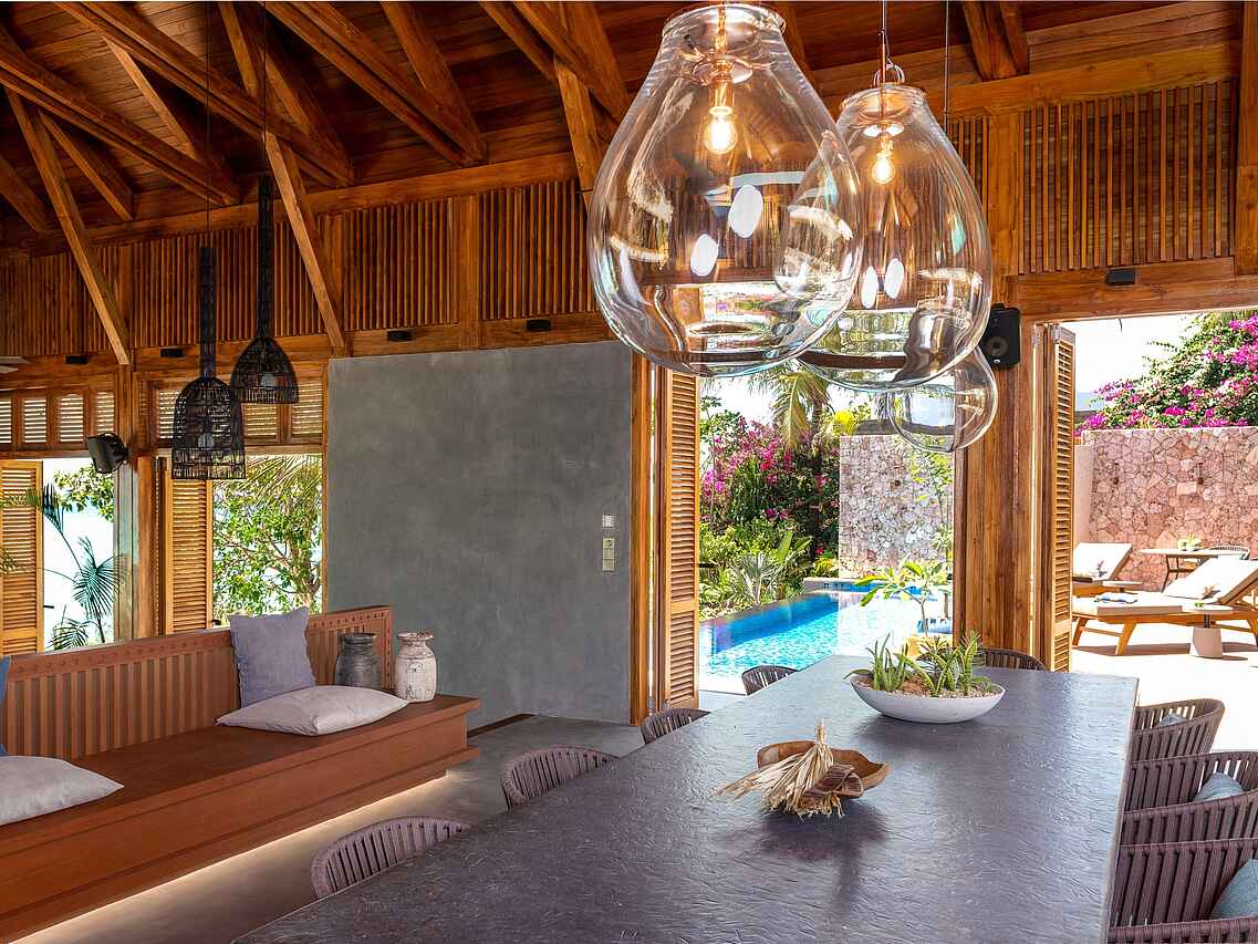 Die 500 m² große Ocean-Front Three Bedroom Villa liegt besonders exklusiv. Mit 3 Schlafzimmern mit jeweils eigenem Badezimmer bietet sie bis zu 6 Erwachsenen und 2 Kindern einen luxuriösen Aufenthalt. Für ein exquisites Erlebnis sorgen privater Strandabschnitt, 12 m langer Infinity Pool, Jacuzzi, Küche mit Essbereich, Minibar, spezieller Weinkühlschrank, Entertainment-Zimmer mit Billardtisch, Fernseher und Multimedia-System. Die atemberaubende Sicht auf den Indischen Ozean und den Sonnenuntergang zählen zu den weiteren Highlights dieser Villa.