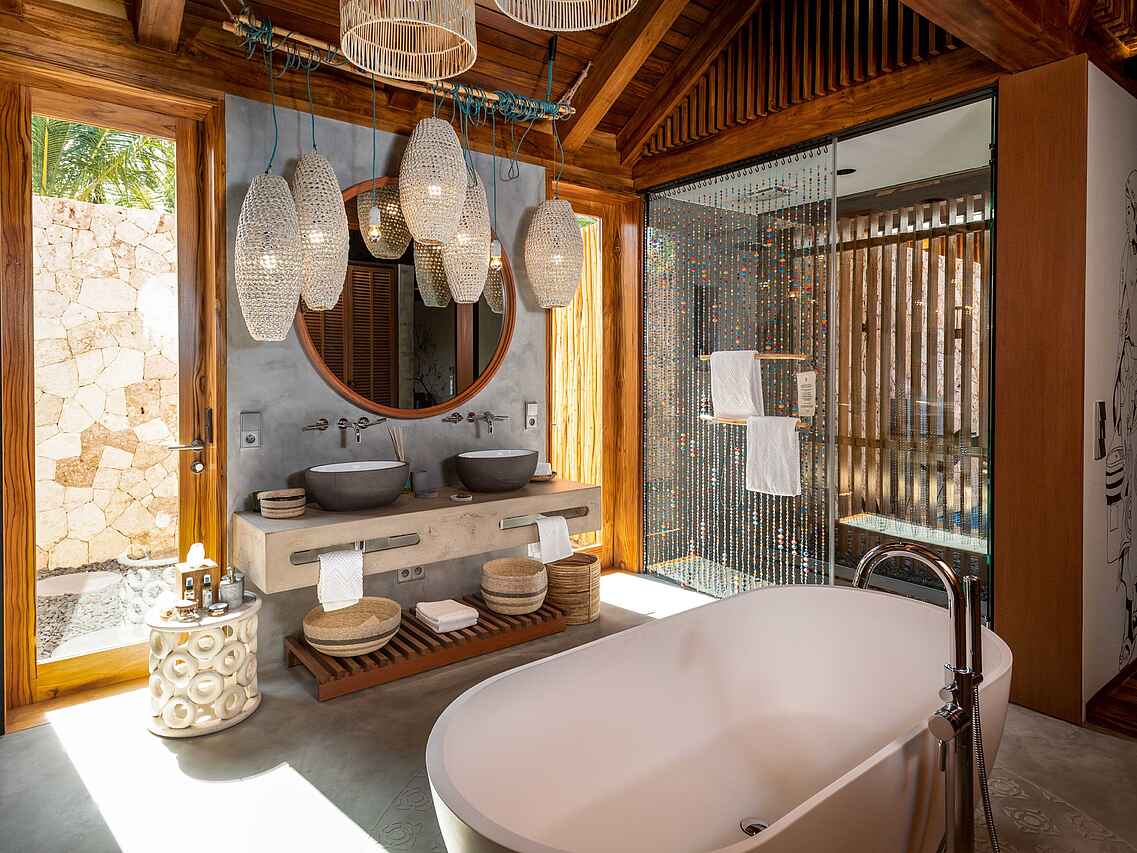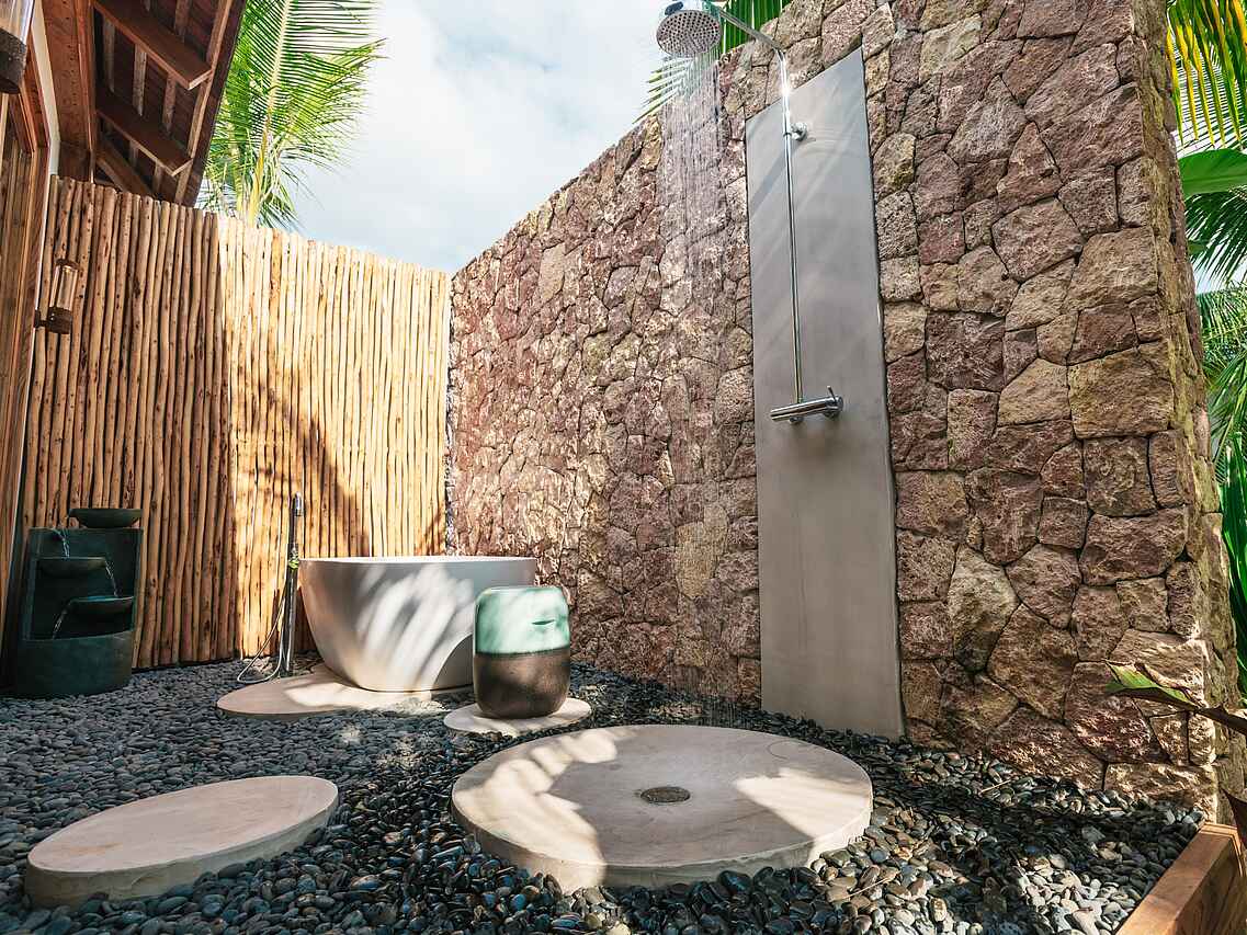 Die Jacuzzi Bungalows unterscheiden sich von den Standard Bungalows, dass sie neben der Innen- und Außendusche auch einen Jacuzzi haben.