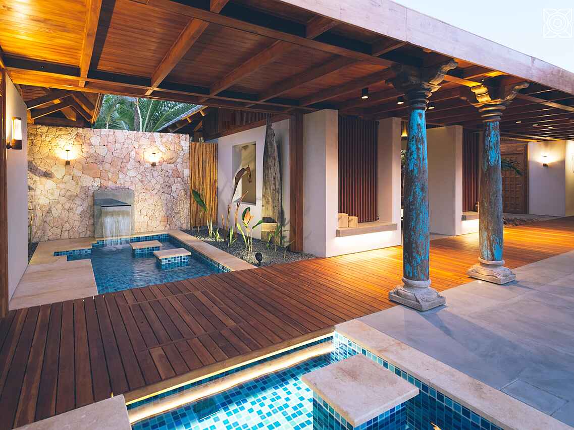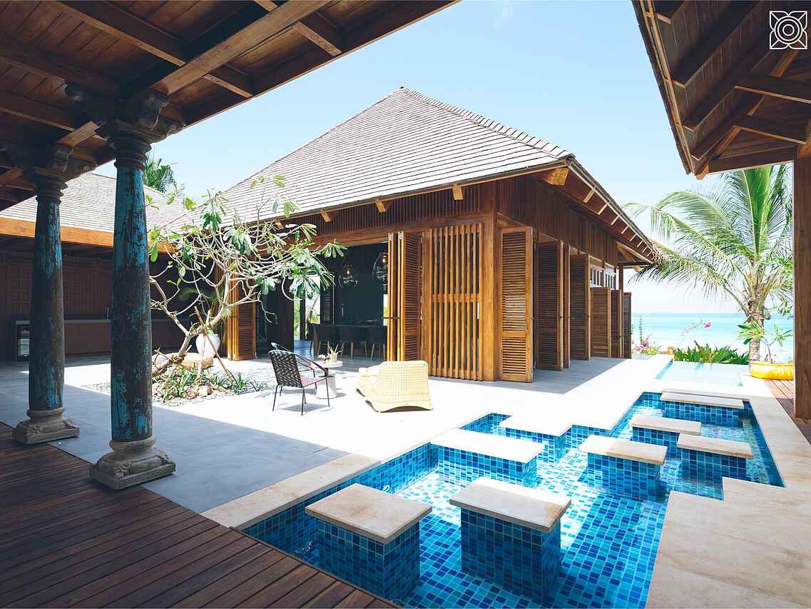 Die beiden 260 m² großen Ocean-Front Two Bedroom Villen liegen direkt am Strand und haben neben den zwei Schlafzimmern mit jeweils eigenem Bad mit Innendusche und Außendusche einen offenen Wohn-, Ess- und Küchenbereich sowie eine Terrasse mit Jacuzzi. Hier genießt man die beste Sicht auf den Sonnenuntergang und das Meer.
